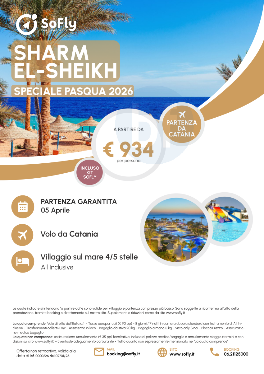 Sharm el Sheikh Speciale Pasqua 2026 con Volo da Catania a partire da € 934 a persona