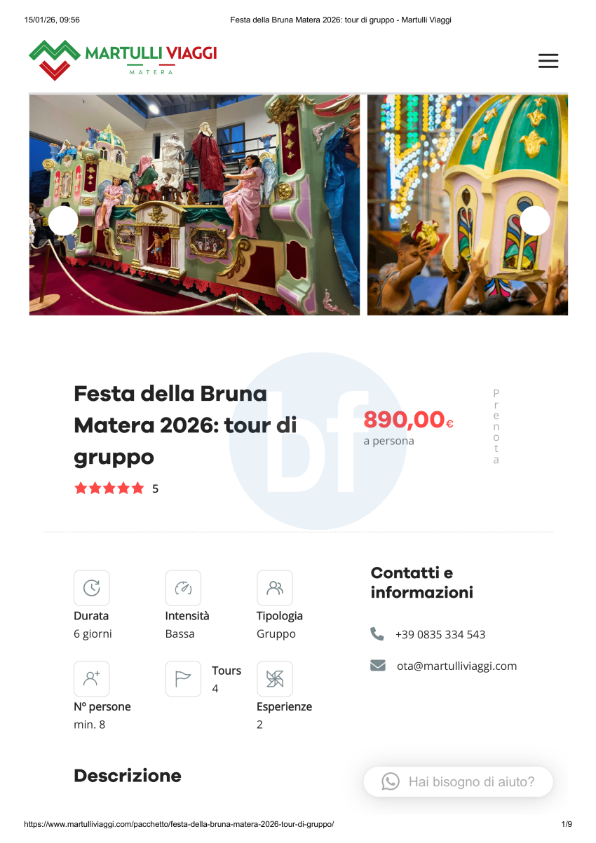 Festa della Bruna Matera 2026: tour di gruppo