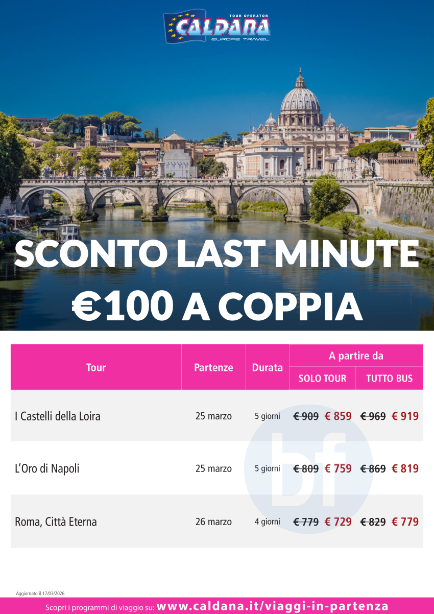 attenzione - 3 viaggi settimana prossima in sconto 100 euro a coppia